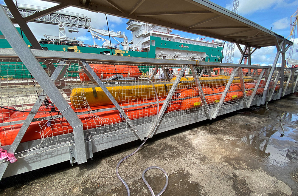 Not only life boats, rescue boats and their davits or cranes but also survival suits, EEBD, air compressors and BA cylinders including the hydrostatic test. Life vests, medical O2 cylinders including refills. On life boats, rescue boats and davits or cranes we do the basic service. Repairs and maintenance can be arranged depending the scope. Inventories will be checked and service given. Supplies can be arranged if ordered on time.